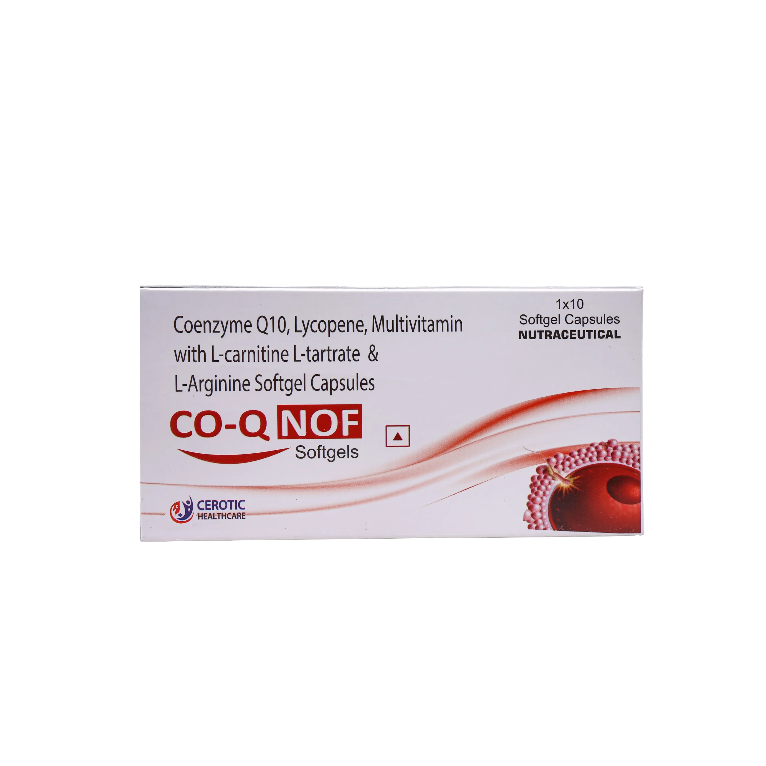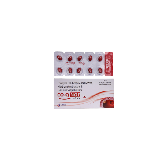 CO-Q NOF Softgels by CEROTIC HEALTHCARE is a high-potency Nutraceutical supplement formulated with a synergistic blend of key ingredients to support various bodily functions, including energy production and antioxidant protection.