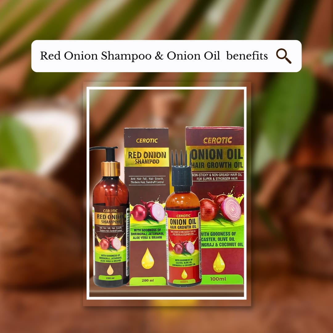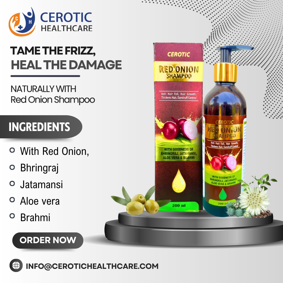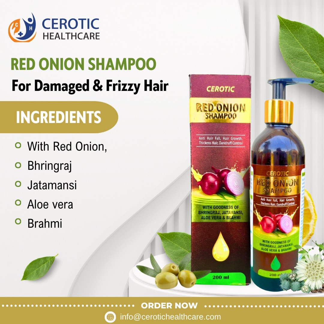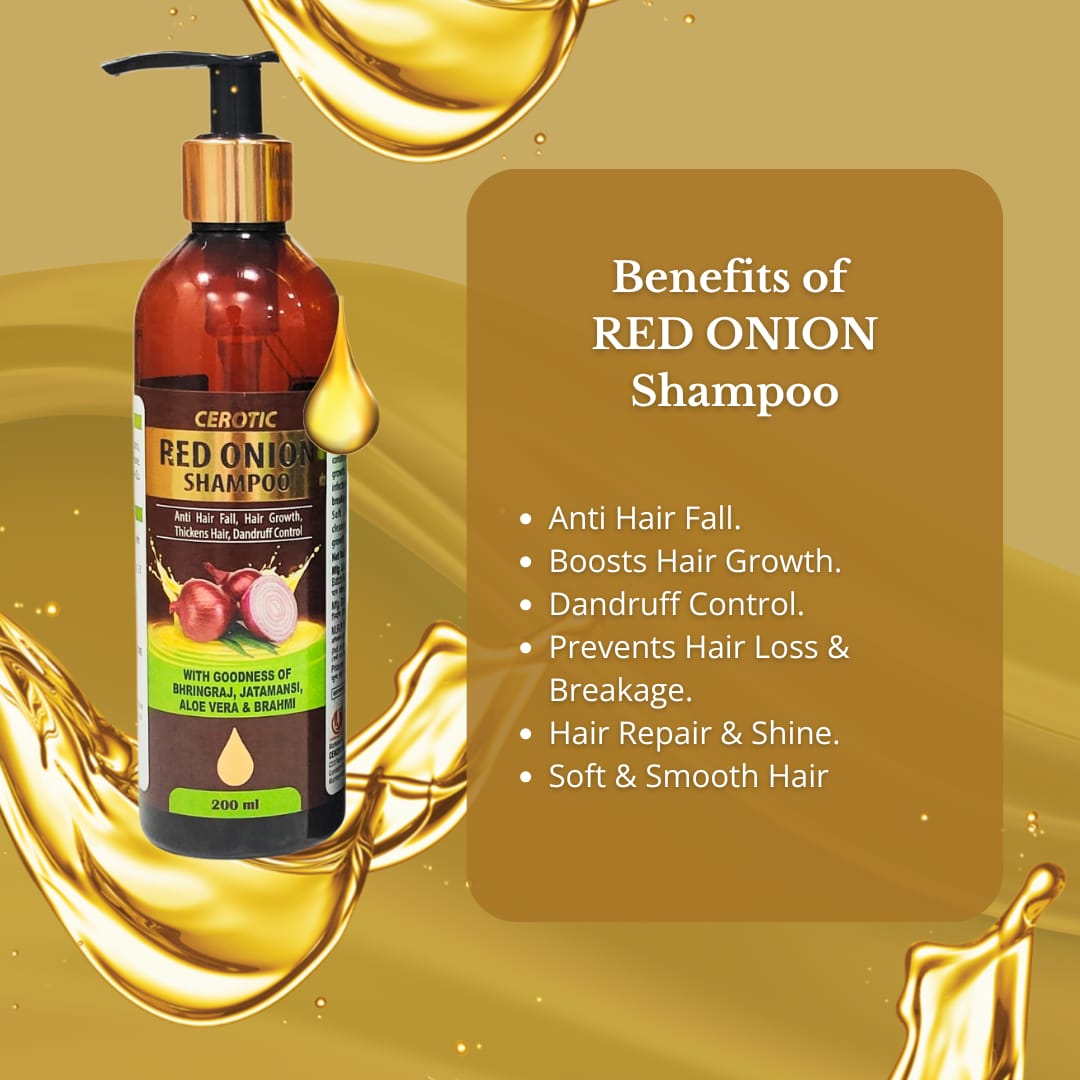 The CEROTIC Red Onion Shampoo is a powerful, all-in-one solution designed to tackle the most common hair problems. Infused with the strength of Red Onion and a blend of traditional Ayurvedic herbs, this shampoo is formulated to promote Hair Growth, Thickness, and control Dandruff, while effectively working as an Anti Hair Fall solution.